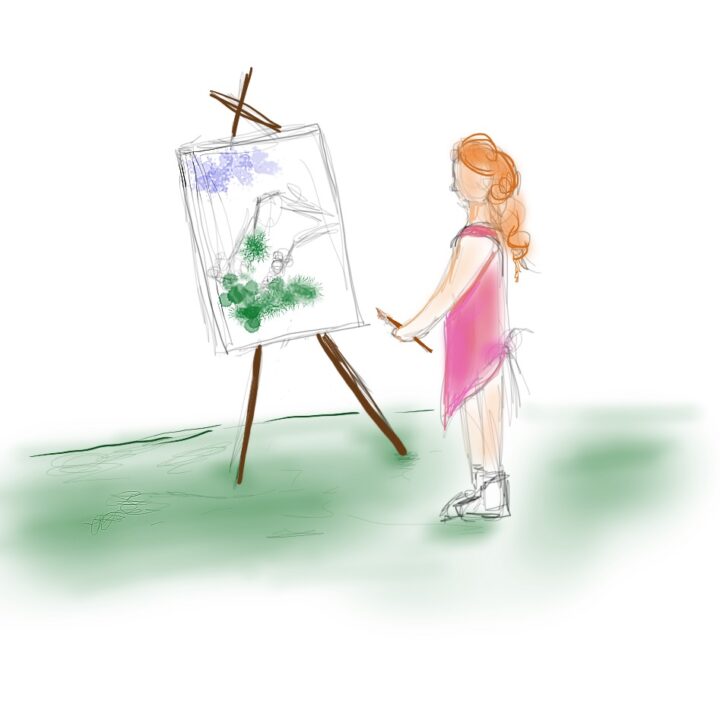 Mi 4×4 arranca un día más. Aguanta, le pido, acariciando el volante somnolienta. El viento se cuela por esa rendija de la ventanilla y yo lo absorbo como quien bebe un zumo de naranja por la mañana, sabe a mar. Una vez más aparco en el mismo sitio, aún se encuentran intactas las marcas de las ruedas del día anterior, y del día anterior, y del día anterior a éste. Coloco el lienzo y con la paleta en mi mano izquierda doy pinceladas finas, esta vez con menos agua y mucha paciencia. El día hoy está nublado, por suerte el cielo ya lleva pintado unos cuantos días, cuando era cian, tan claro que he gastado el tubo de pintura blanco, que descansa vacío en mi mochila, desnutrido y chupado como las mejillas de una abuelita. La montaña no está igual que ayer, ni que antes de ayer, ni que el día anterior a éste. Ha cambiado de forma, se ha movido, ha crecido. Cada día está diferente, diferente color, diferente roca, diferente bosque. Cada día, diferente yo. Cada día, diferente brocha y pincel y diferente paleta, diferente técnica y diferente sol. Sol pálido, sol resplandeciente, sol quejica y sol tímido. Y así pasan los días, mismo todoterreno, y misma manera de aparcar, mismo caballete y mismo lienzo.